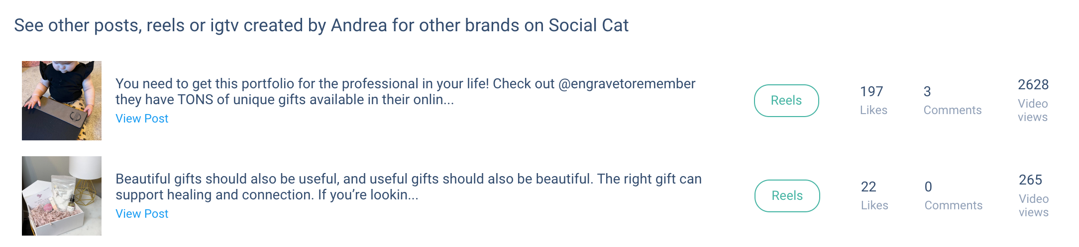 On Social Cat we implemented a review system where you can see the previous successful campaigns that the creators had in the past. This is a huge upside point for brands that are looking to work with professionals and want to see their portfolio.