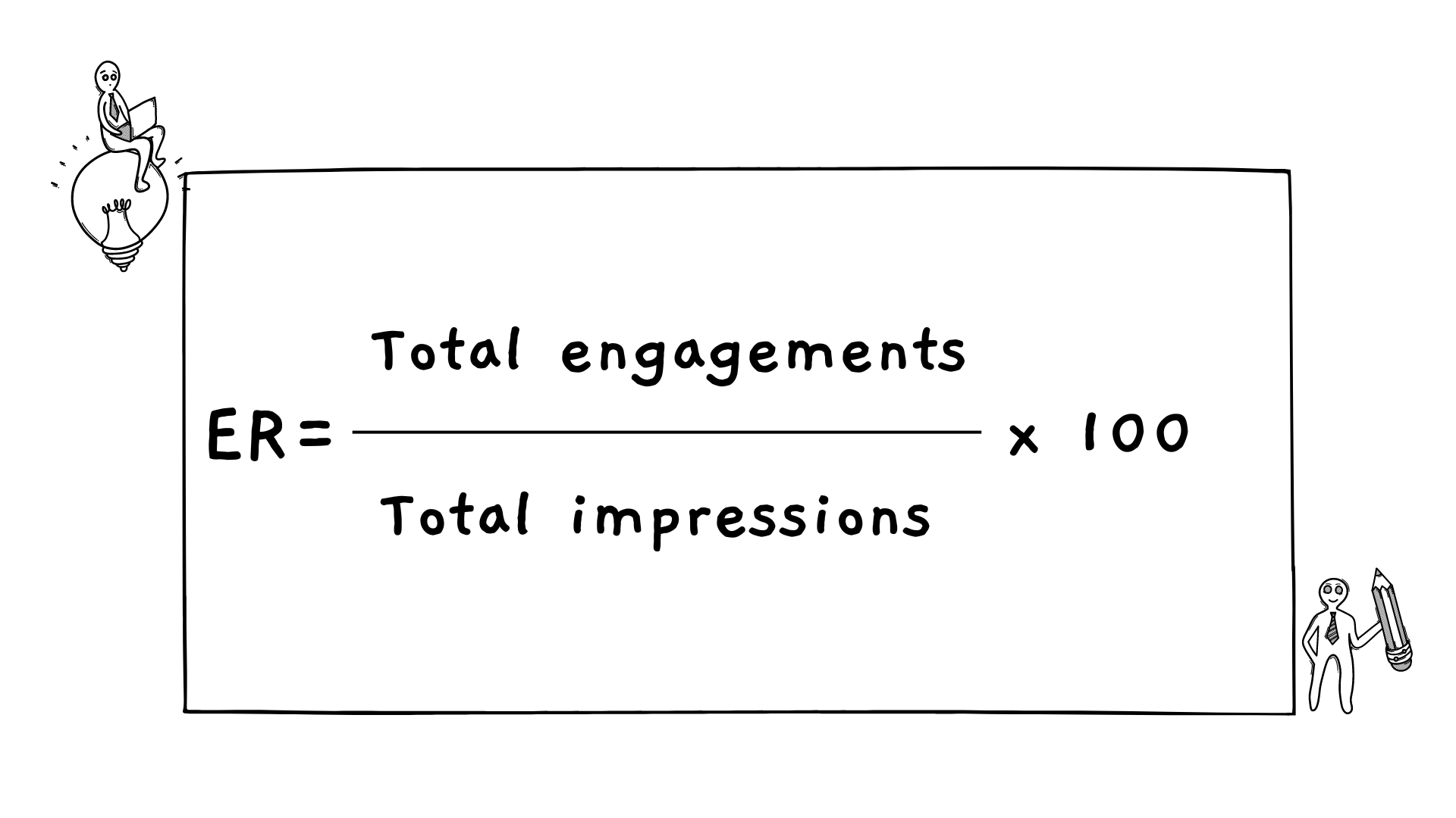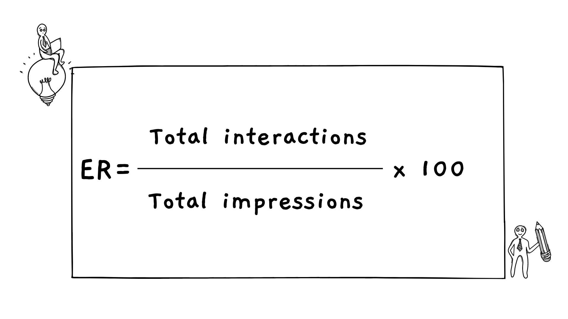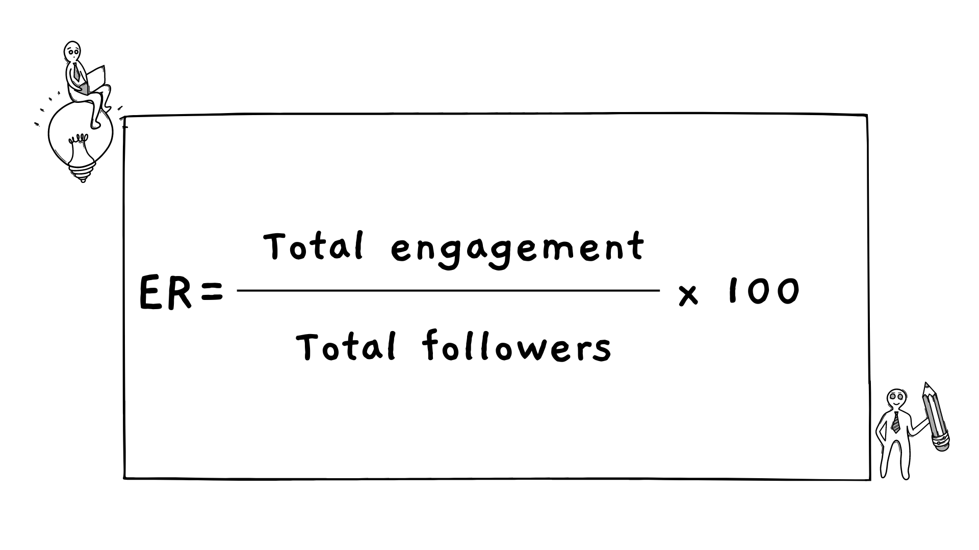 Instagram engagement rate (aka ER) = (Total Engagements/Total followers) x 100