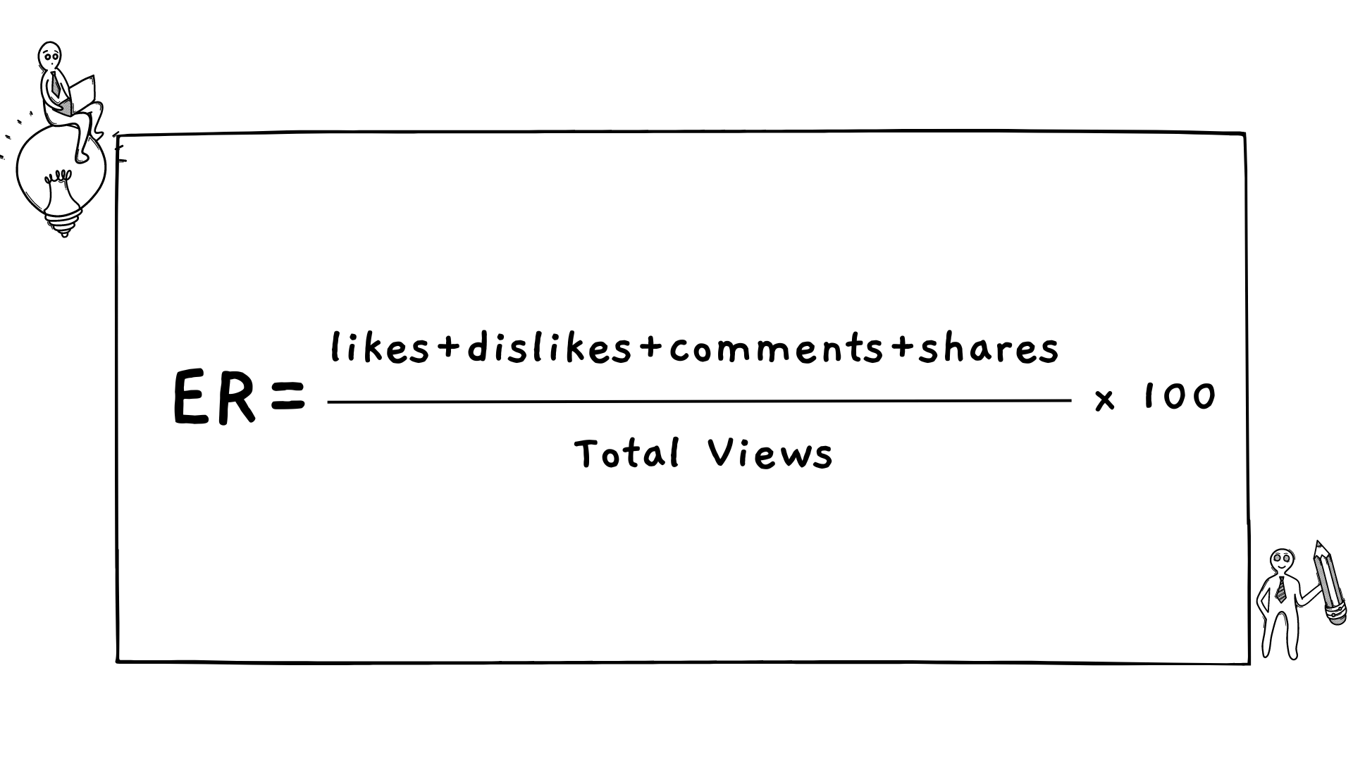 YouTube engagement rate = (Likes + Dislikes + Comments + Shares / Total Views) x 100