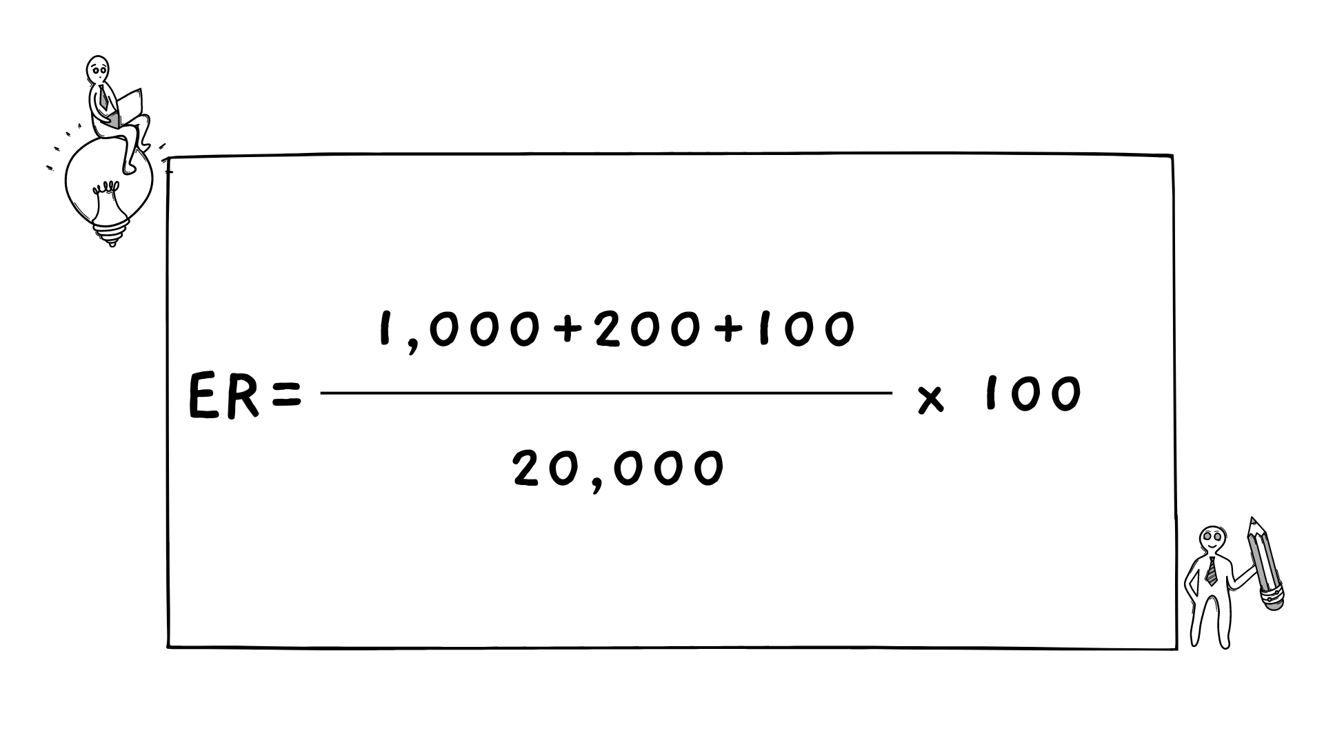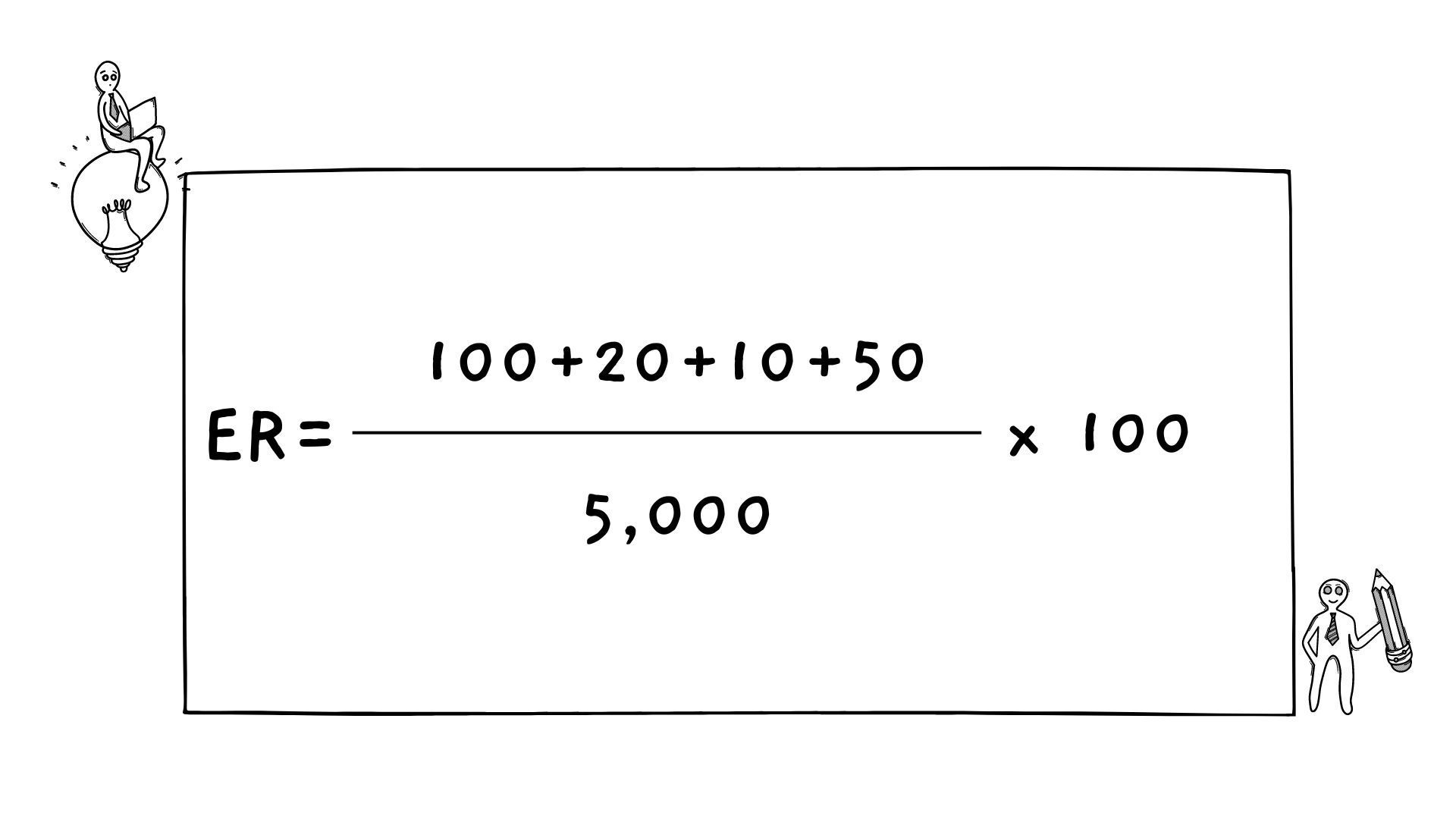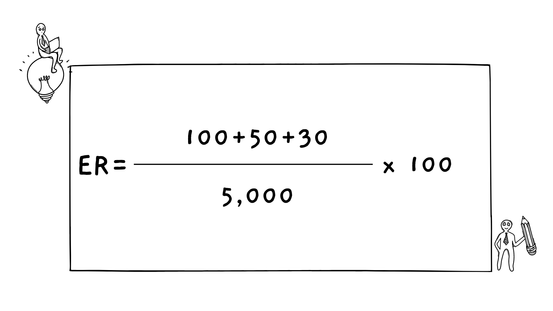 If an Instagram post has 500 likes, 50 comments, 30 shared, and 20 saves, and the account has 10,000 followers (this isn’t a math textbook, we like to keep the numbers even!), then: