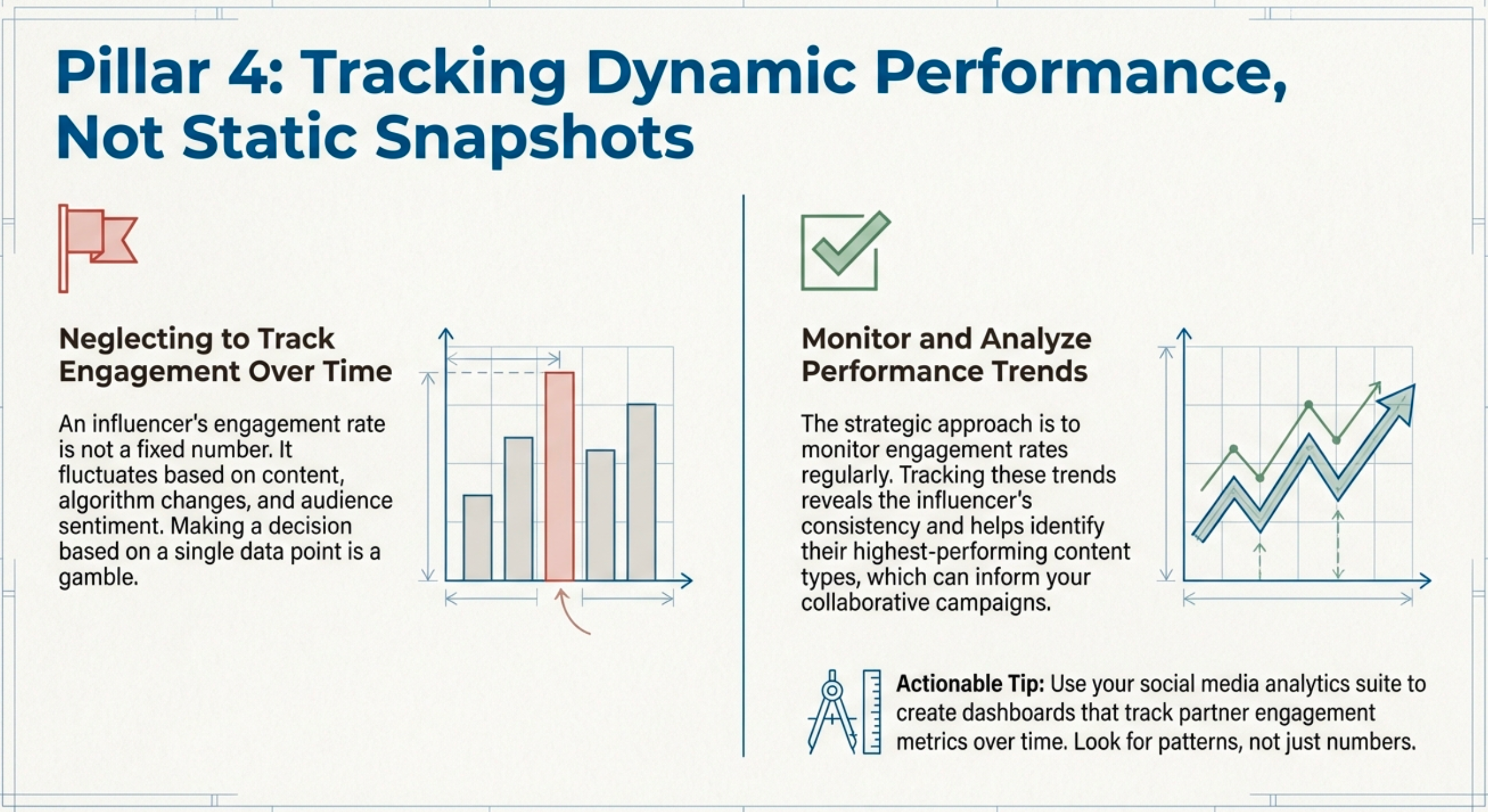 Why it happens: Engagement rates can fluctuate over time, and failing to track them can lead to missed opportunities or wasted investments. The fix: Monitor engagement rates regularly and track trends to identify high-performing content and influencers. Practical tip: Use social media analytics tools to track engagement metrics over time and identify patterns.