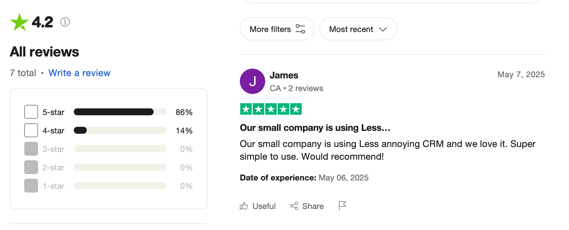 Less Annoying CRM (LACRM) is a straightforward, cloud-based customer relationship management tool tailored for small businesses and solopreneurs. It offers essential features like contact and pipeline management, task tracking, calendar integration, and customizable fields, all within a clean, intuitive interface. With a single, affordable pricing plan and a commitment to simplicity, LACRM eliminates the complexities often associated with larger CRM systems.