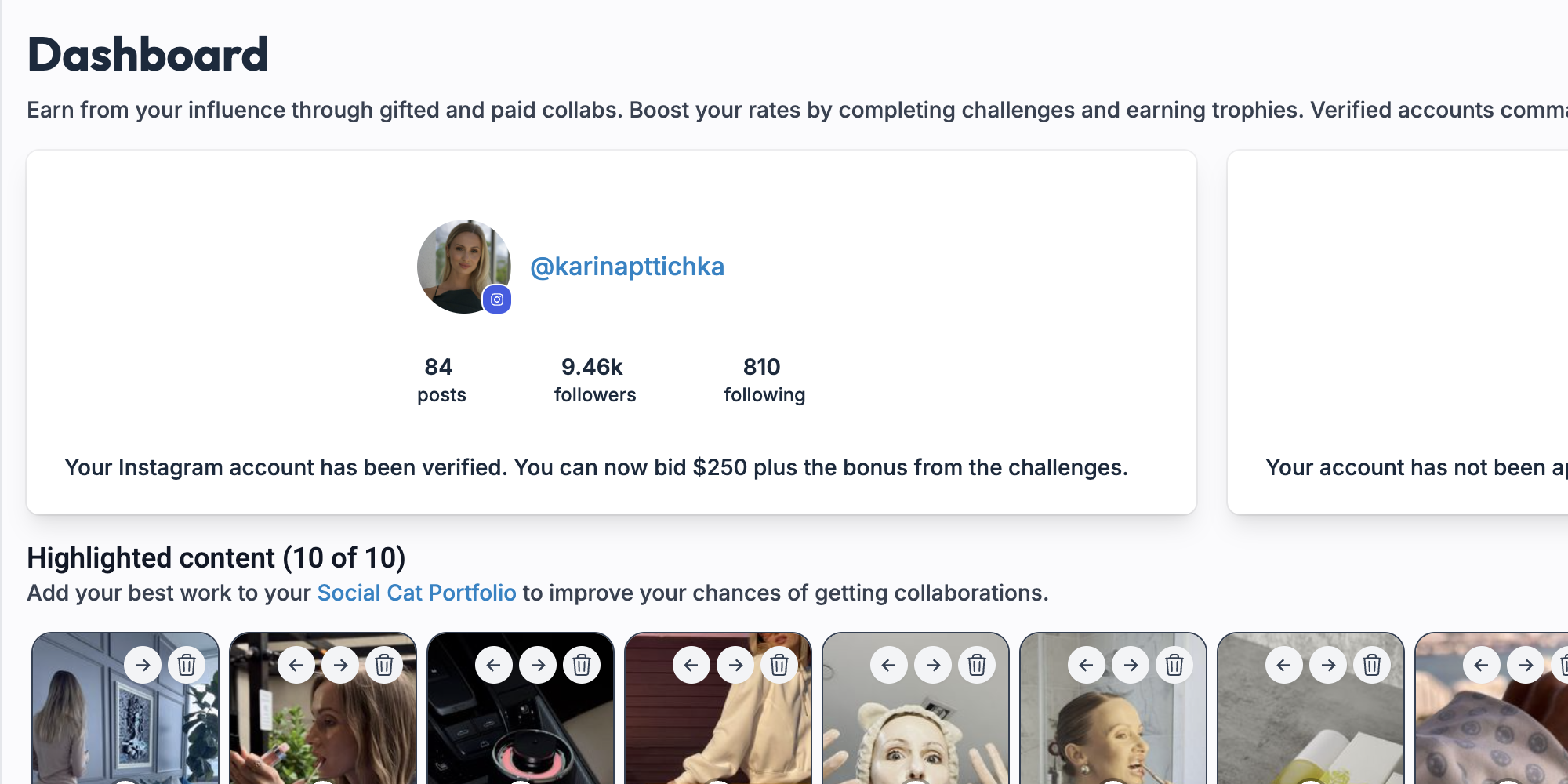 “Social Cat is great for me. There are many interesting brands to work with. The platform itself is very easy to navigate.”