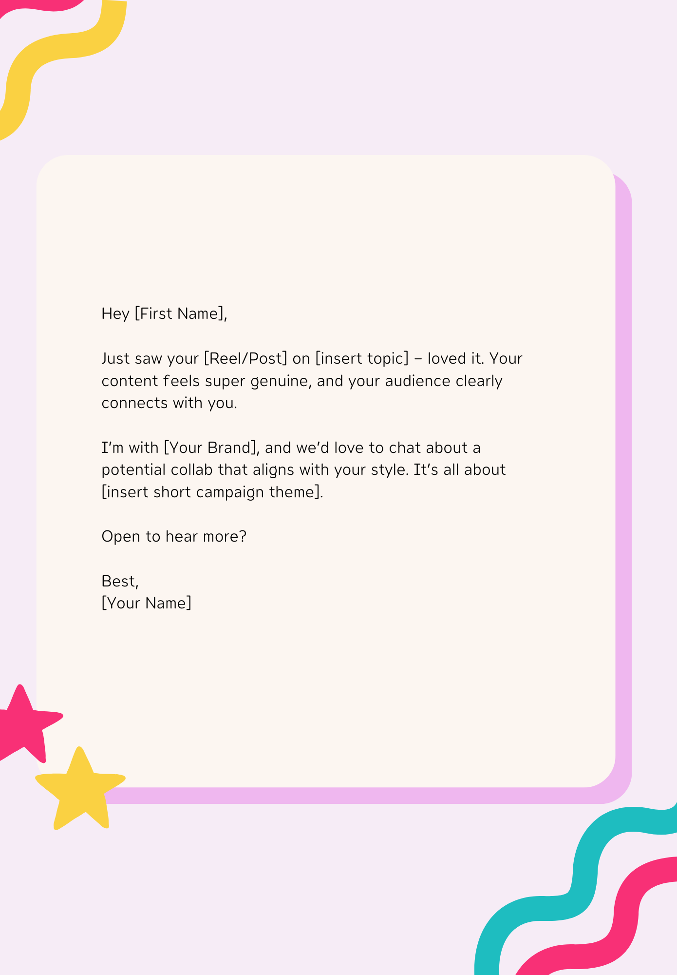 If you lead with a generic “Hey, we love your vibe 💕” it’s a no. But do you reference a specific reel they made or connect your product to something they already care about? Now we’re talking.