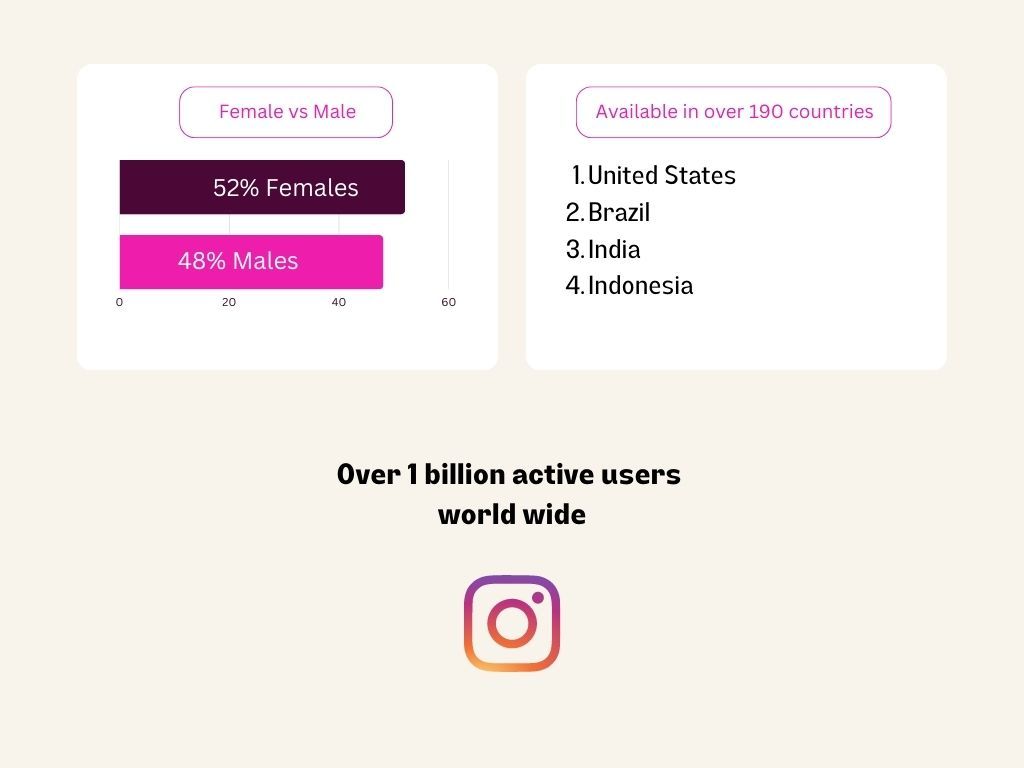 Additionally, the gender split on each platform may also influence the types of successful influencers, with female influencers potentially having more success on Instagram and male influencers on TikTok. You can check more demographics below regarding both platforms.