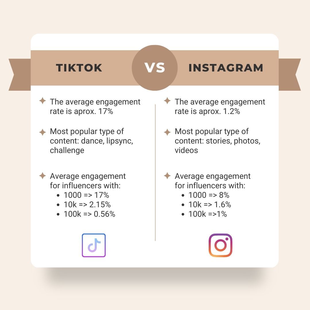These differences in content and engagement can impact the type of influencers that are successful on each platform and the effectiveness of influencer marketing campaigns. Brands looking to create fun and engaging content that resonates with younger audiences may find TikTok to be a better fit, while those looking to create more polished and professional content may find Instagram to be more suitable.