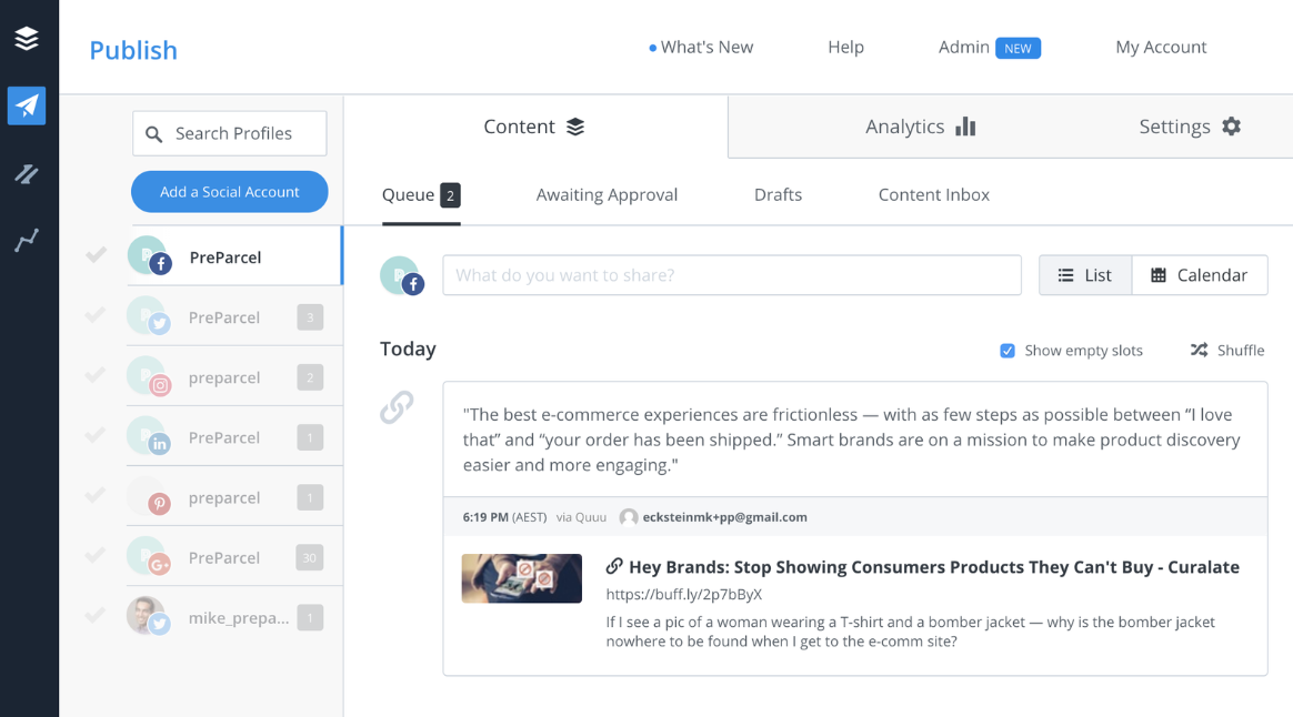 - Schedule and manage content across multiple social media profiles from a single platform.
